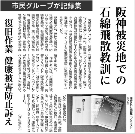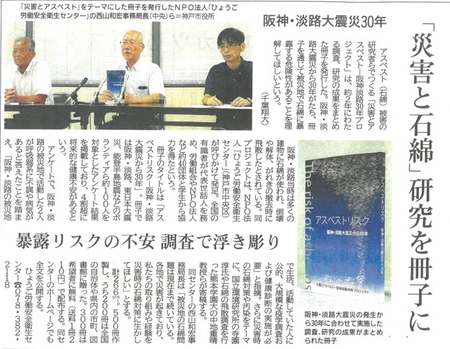 この度、9月1日に発行した「アスベストリスクー阪神・淡路大震災から30年」についての記事が神戸新聞と河北新報に掲載されました。